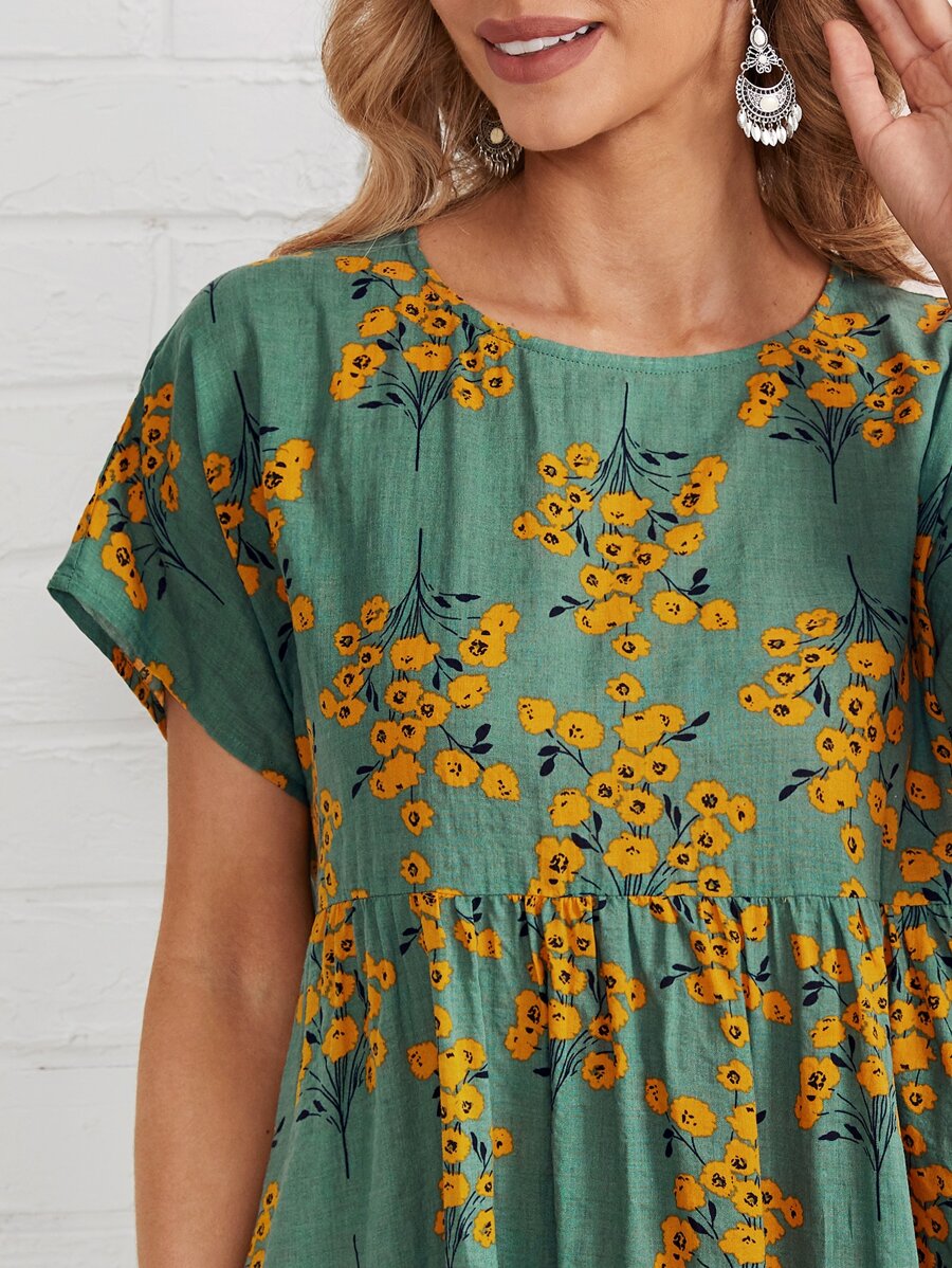 EMERY ROSE Floral Print Smock Dress
