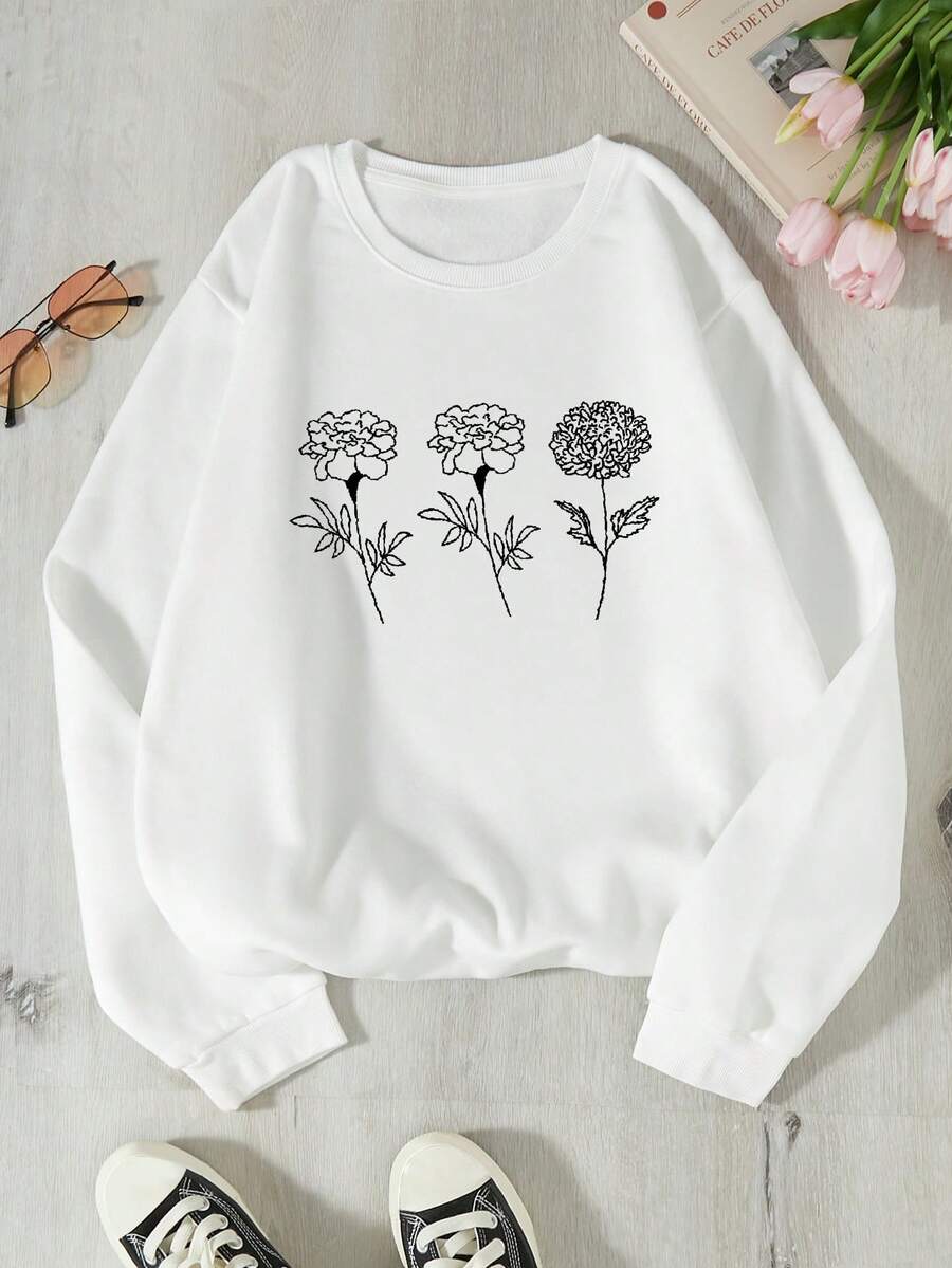Floral Print Thermal Lined Sweatshirt