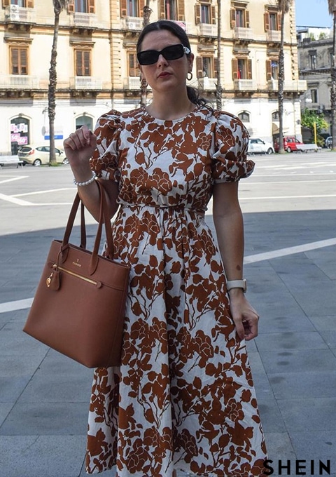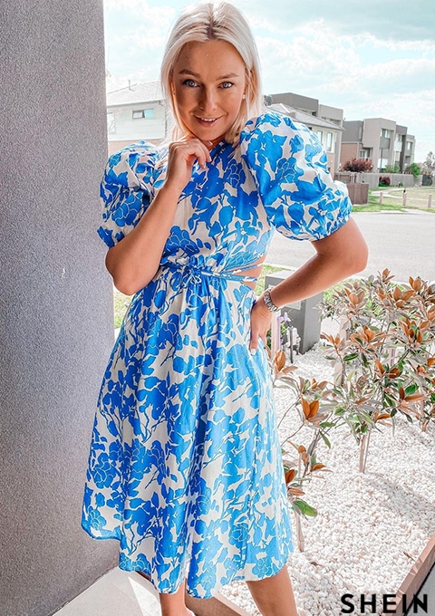 SHEIN VCAY Floral Print Tie Back Cut-out Dress