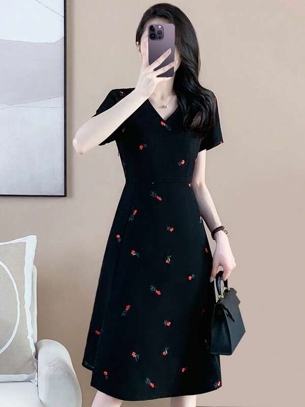 Floral Print V Neck Dress