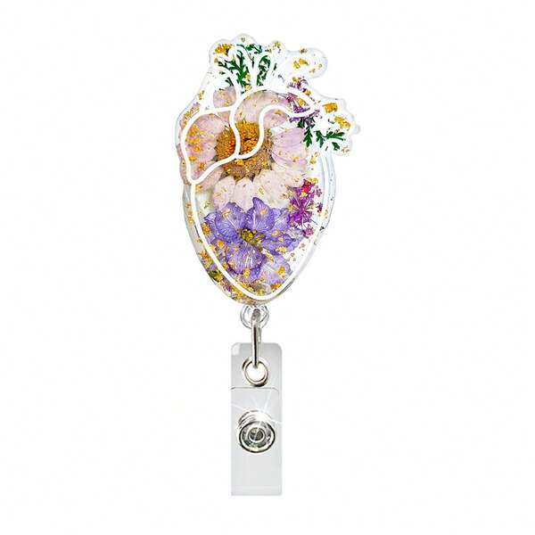 Flower Badge Reel Holders Christmas Gift Uterus Tooth Kidney Lung Shape Dried Flower Resin Badge Reel Doctor Badge Clip Retractable Badge Clip For Nurse Doctor Student