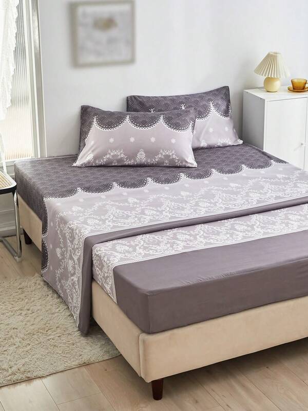 Flower Embroidery Fitted Sheet Set Without Filler
