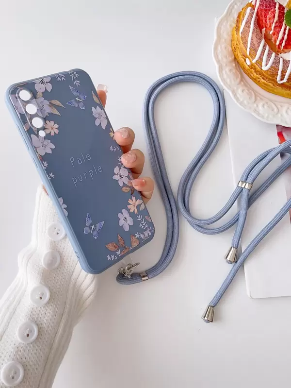 Flower Pattern Phone Case With Lanyard Compatible With iPhone15/15Plus/15Pro/15Promax