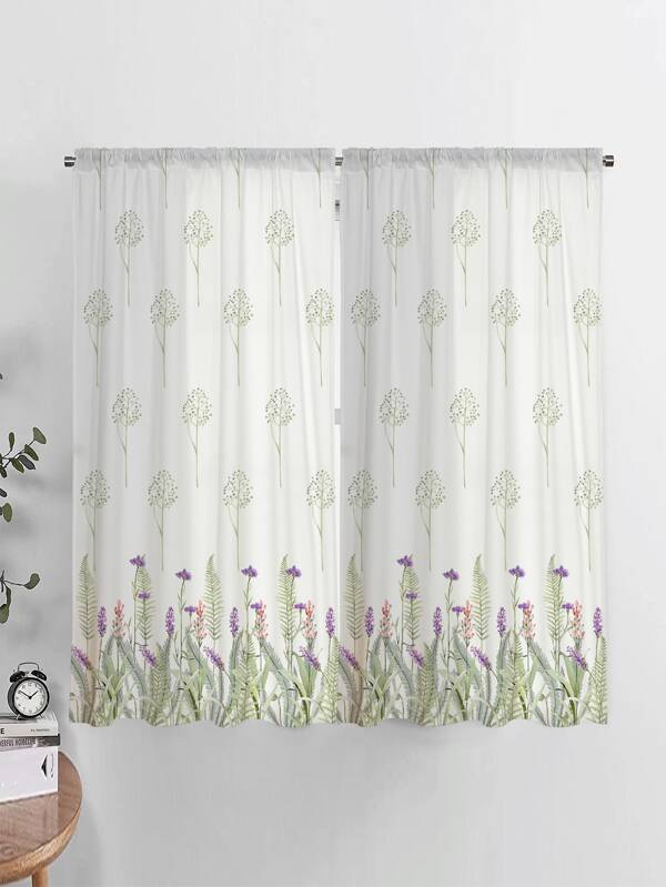 Flower Pattern Single Panel Curtain, Pastoral Polyester Single Panel Blackout Curtain For Bedroom And Living Room