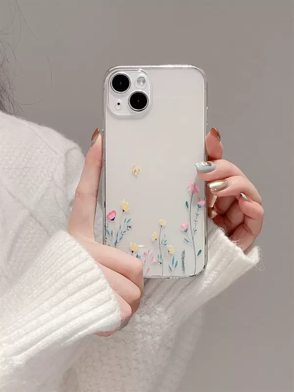 Flower Print Clear Phone Case Compatible With iPhone15/15Plus/15Pro/15Promax