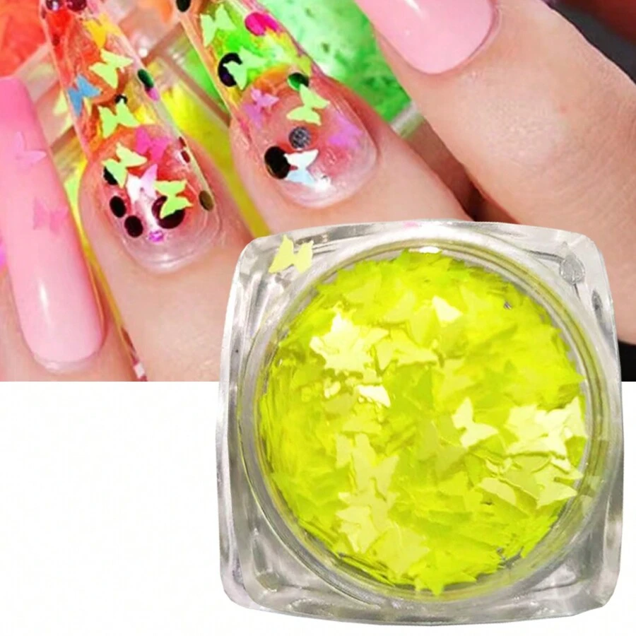 Fluorescent Yellow Holographic Ultra-Thin Glitter Butterfly Shape Sequins And Multi-Color Paper Flakes For Diy Nail Art Decoration, Resin Craft And Jewelry Making
