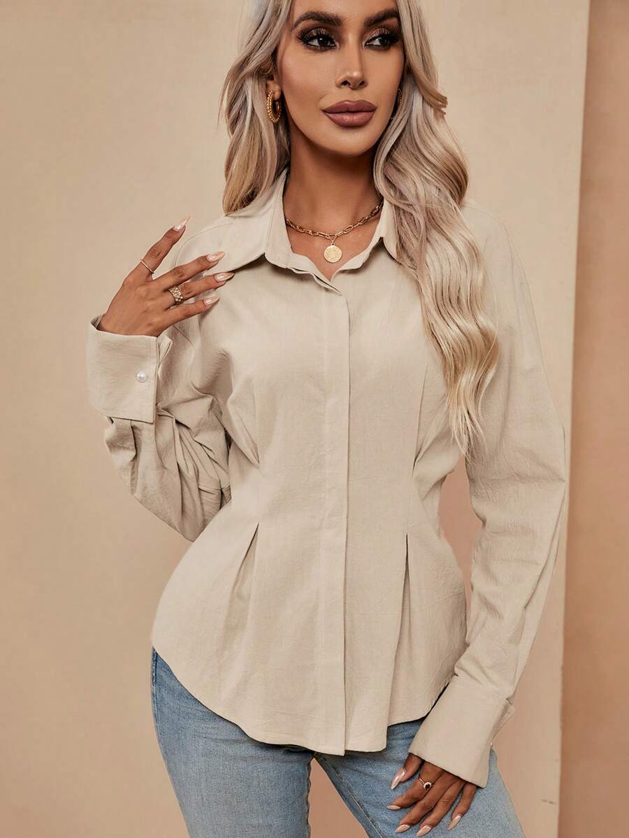 SHEIN LUNE Fold Pleated Detail Drop Shoulder Shirt