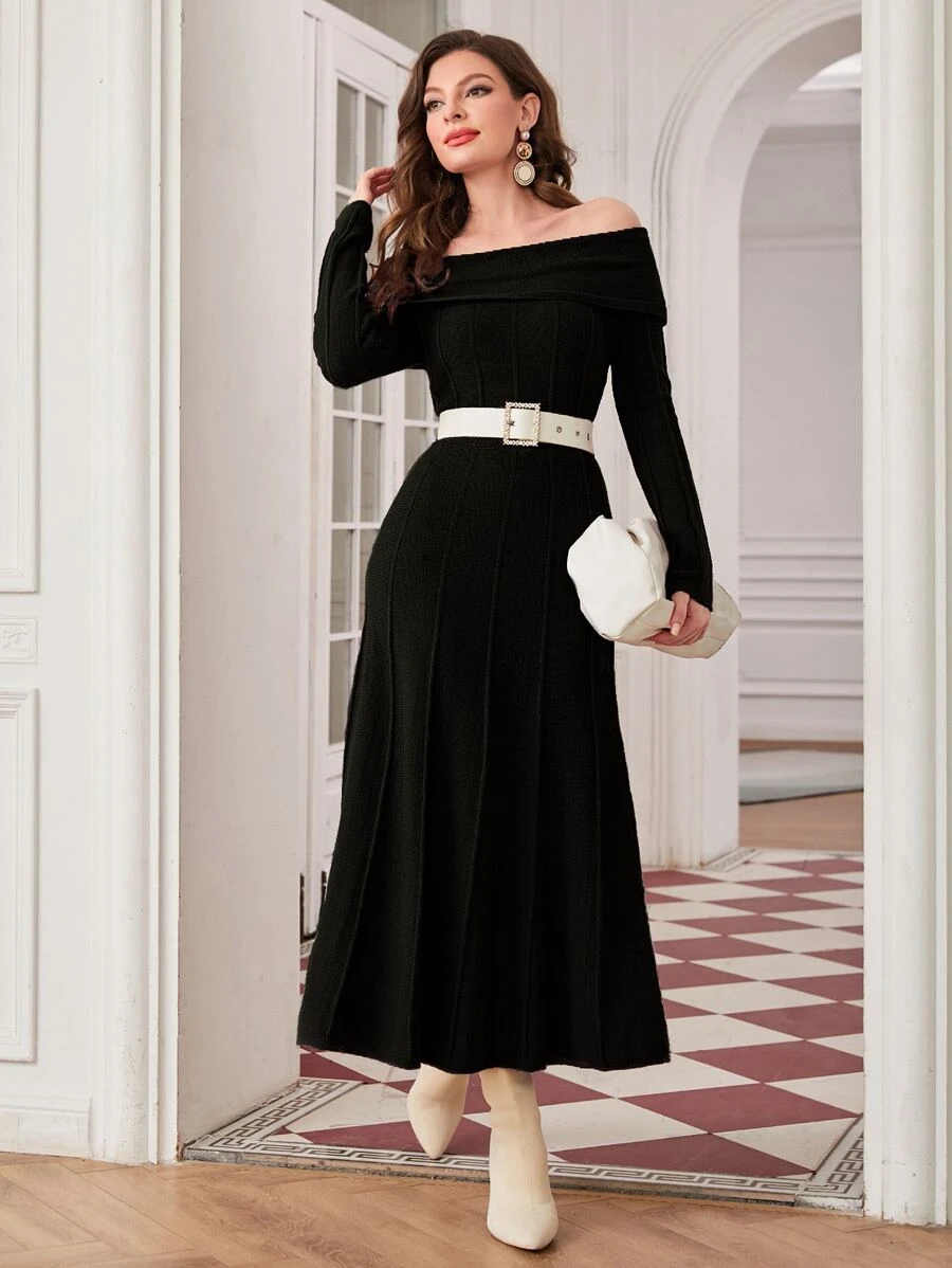 SHEIN Modely Foldover Off Shoulder Sweater Dress Without Belt
