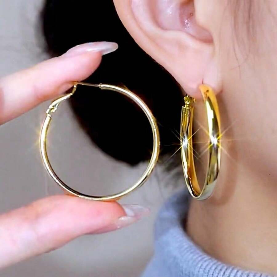 French Style 2023 New Design Women'S Plain Circle Metal Hoop Earrings, Unique And Trendy Accessory