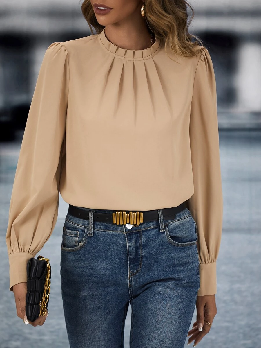 SHEIN LUNE Frill Neck Puff Sleeve Blouse