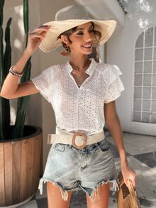 SHEIN Unity Frill Notched Neck Two Layer Sleeve Schiffy Blouse