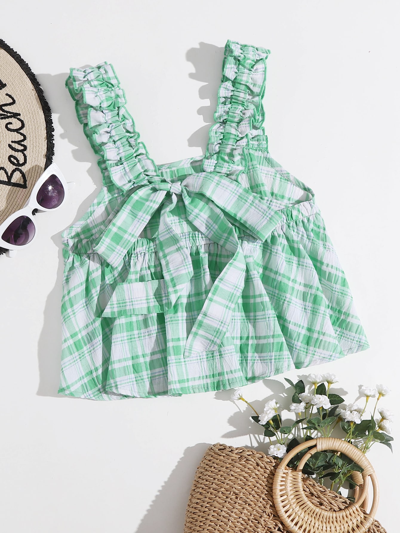 SHEIN Unity Frill Trim Strap Tie Back Plaid Tank Top