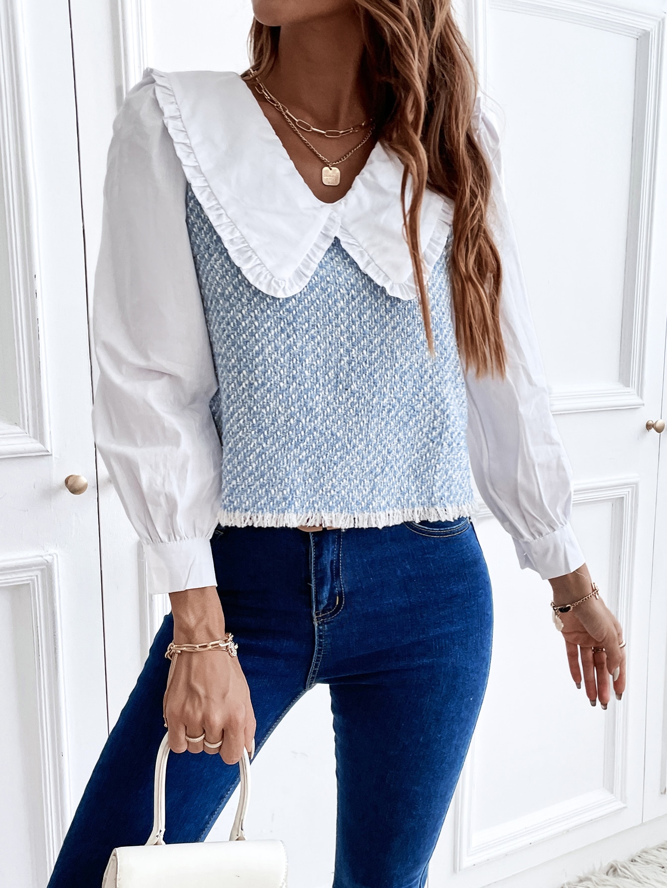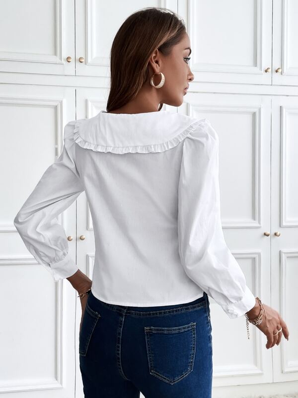 Frilled Statement Collar Raw Trim Top