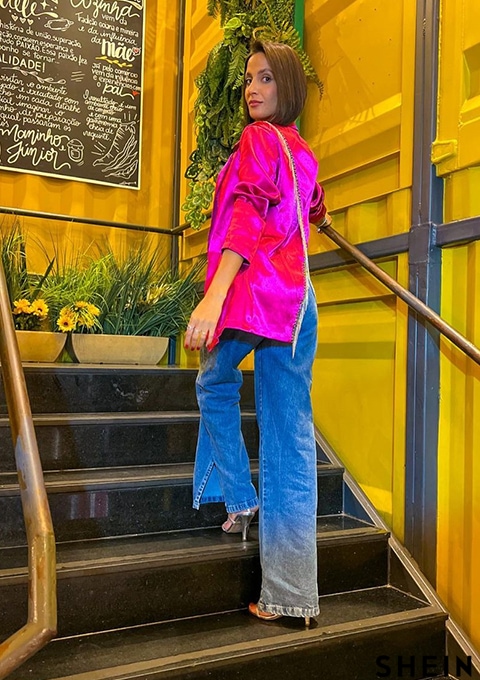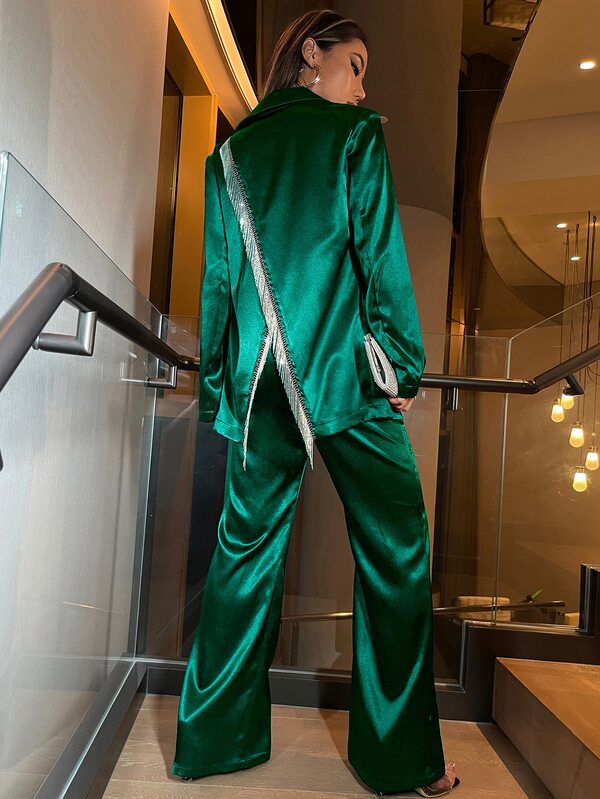 SHEIN BAE Fringe Trim Split Back Single Breasted Blazer & Pants