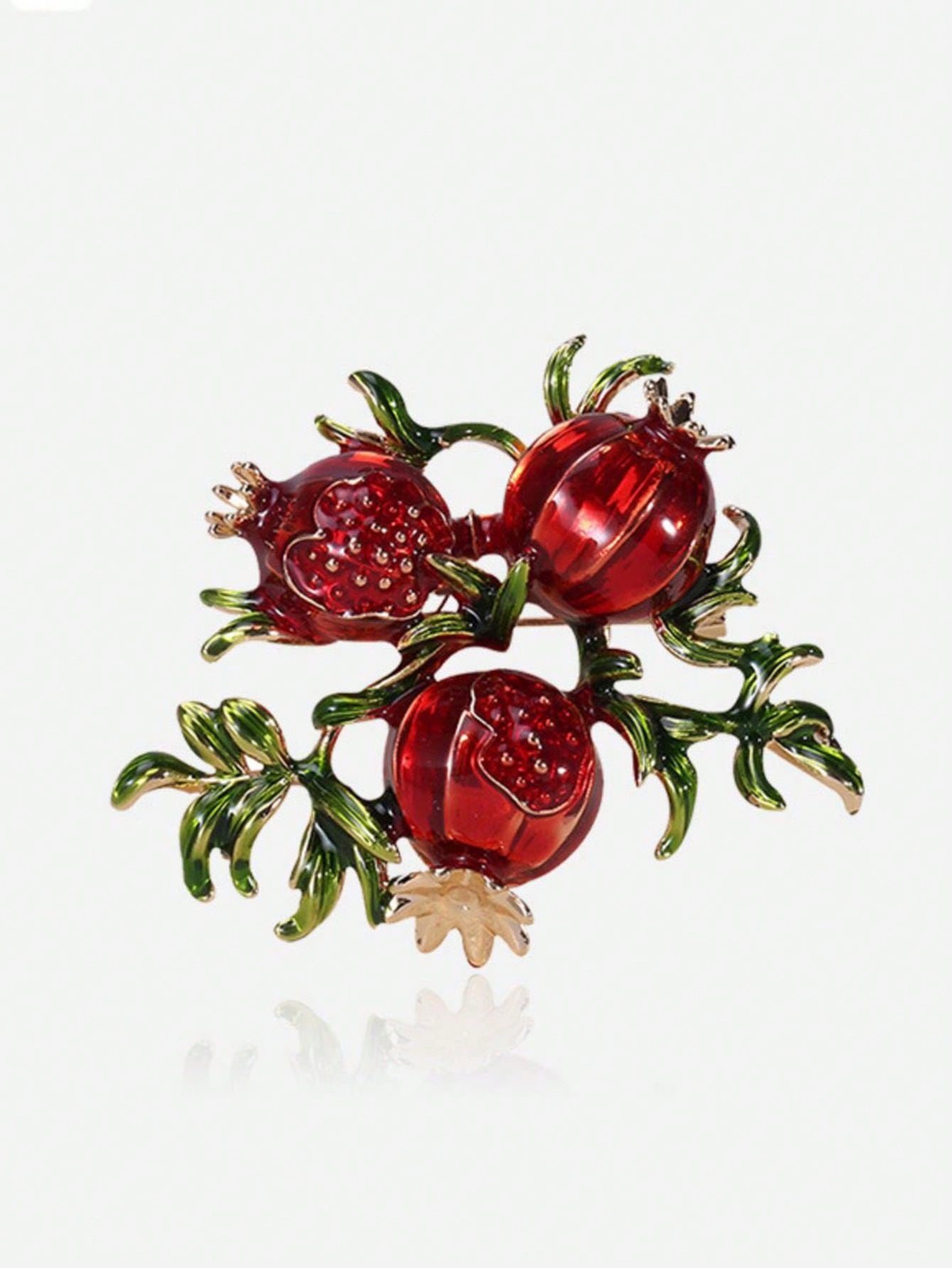 Fruit Shaped Brooch Pin, Pomegranate Style With Colored Resin And Zinc Alloy