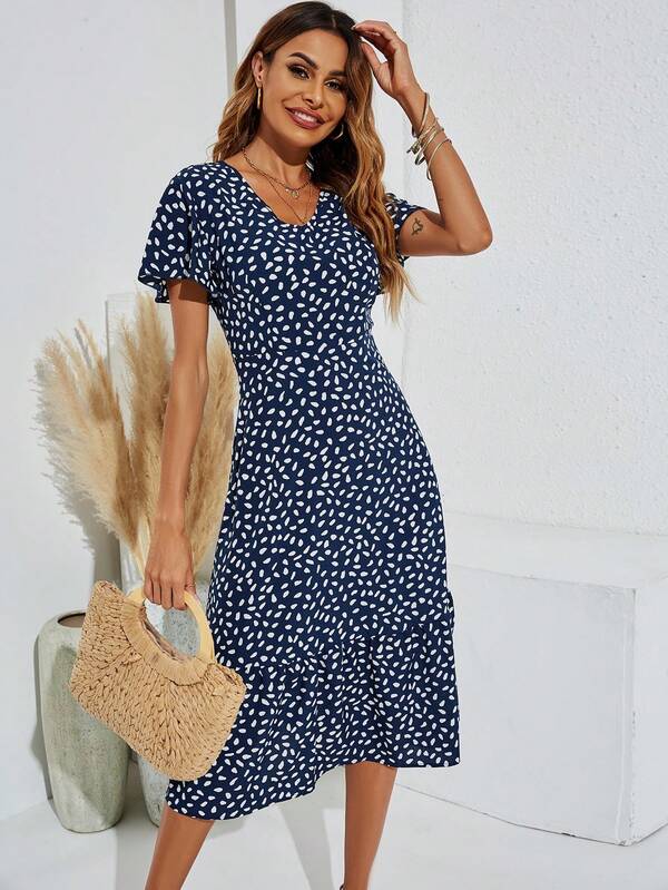 SHEIN LUNE Full Printed V-Neck Dress