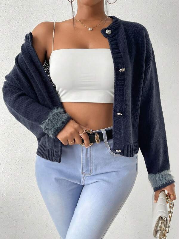 SHEIN Slayr Fuzzy Cuff Drop Shoulder Cardigan