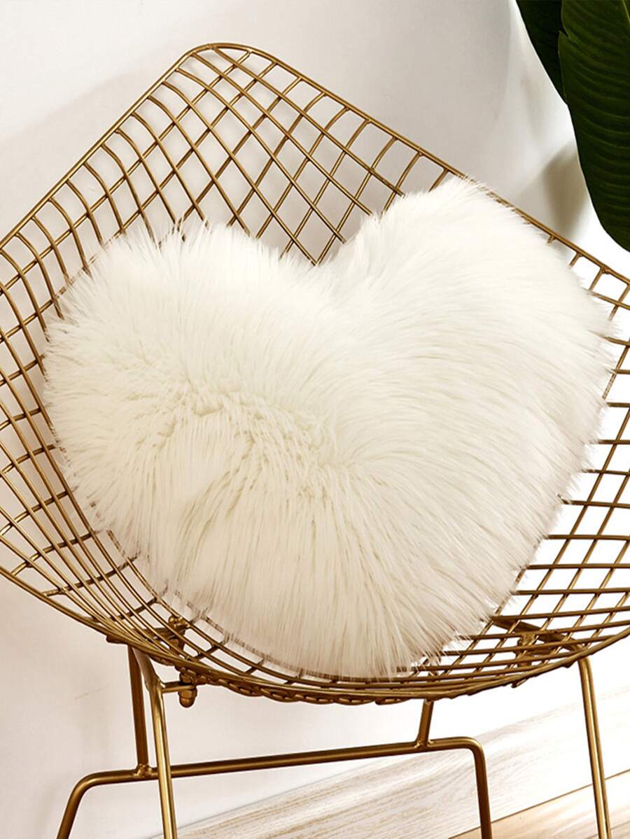 Fuzzy Heart Design Cushion Cover Without Filler, Plush Soft Throw Pillow Case, Pillow Insert Not Include, For Sofa, Home Decor