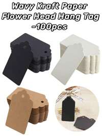 100±10pcs Wavy Kraft Paper Flower Gift Tags, Halloween Christmas Wedding Party Kraft Paper Gift Tags 5*3cm/2*1.2" Clothing DIY Tags (Black/White/Kraft)
