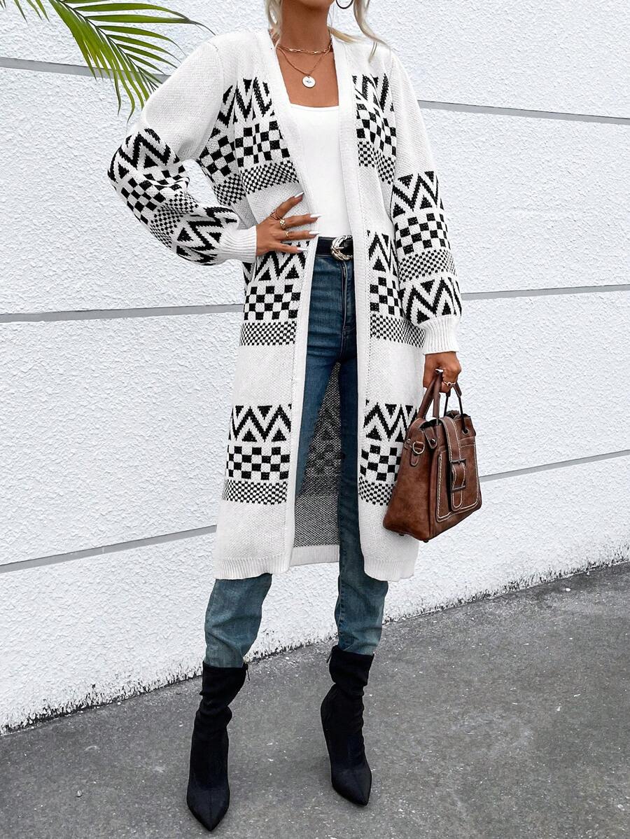 SHEIN Essnce Geo Pattern Drop Shoulder Open Front Cardigan