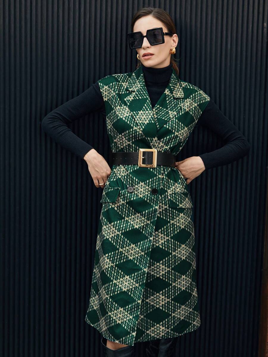 SHEIN BIZwear Geo Print Lapel Neck Vest Coat Without Belt