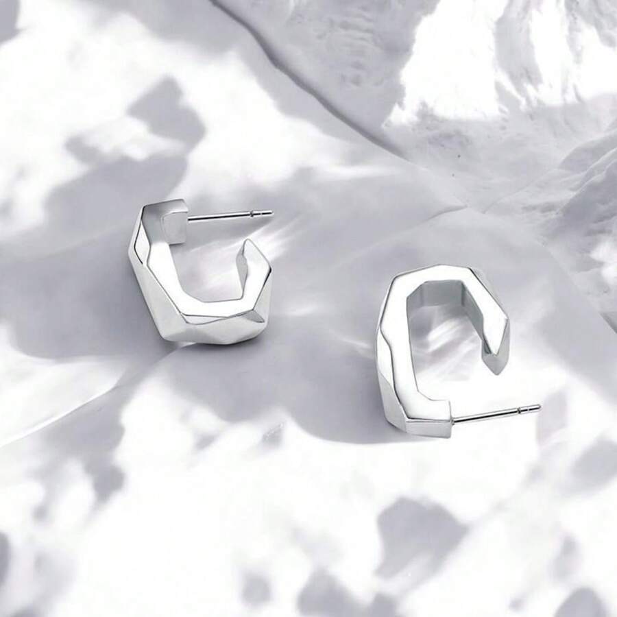 Geometric Design Stud Earrings For Women, 2022 New Arrival Minimalist Sterling Silver Ear Studs With Unusual Style And High Class Aesthetic