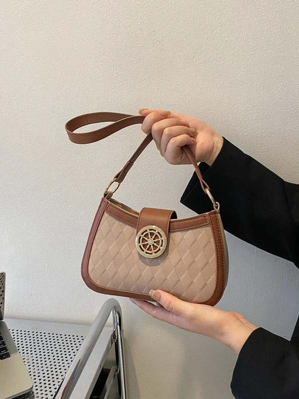 Geometric Embossed Metal & Rhinestone Decor Contrast Binding Hobo Bag
