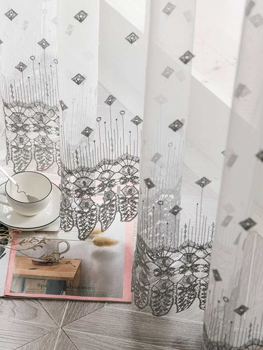 Geometric Embroidered Single Panel Curtain