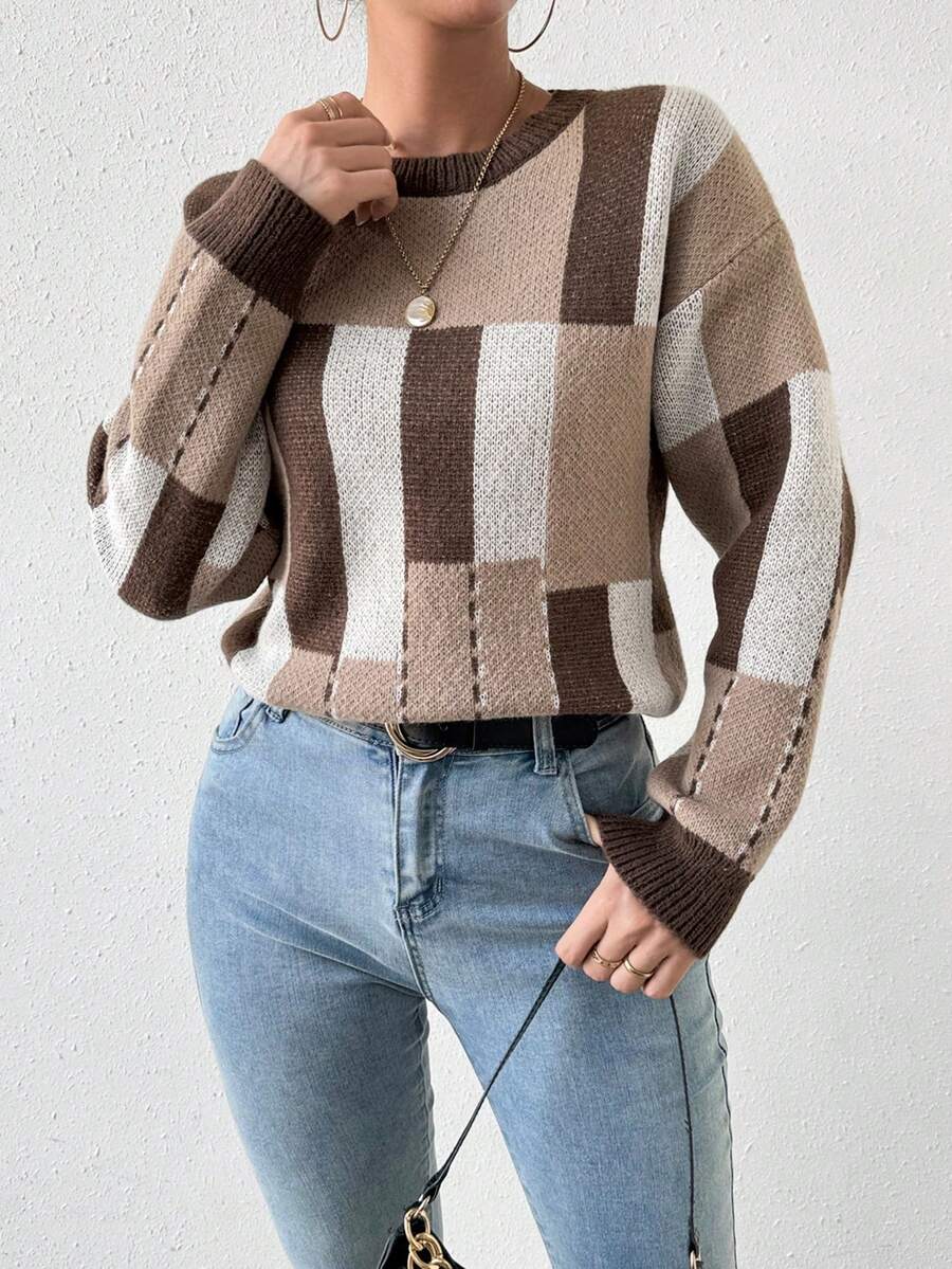SHEIN Essnce Geometric Pattern Knitted Pullover Sweater