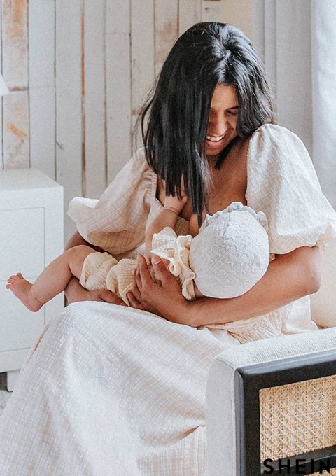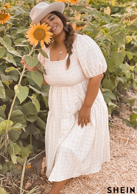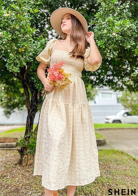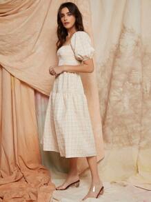 SHEIN VCAY Gingham Puff Sleeve Dress