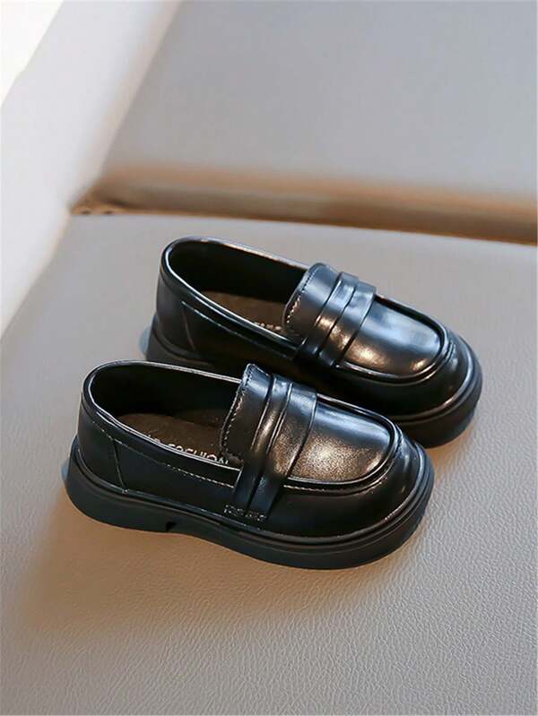 Girls' College Style Leather Loafers With One-Step Design And Soft Sole