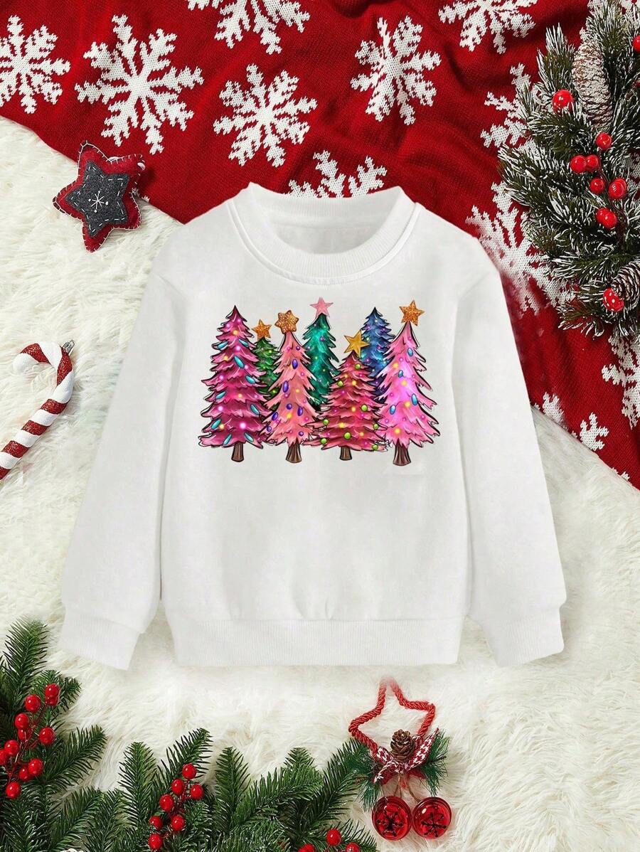 Tween Girl Fashionable & Cute Printed Round Neck Sweatshirt For Casual Streetwear, Autumn And Winter