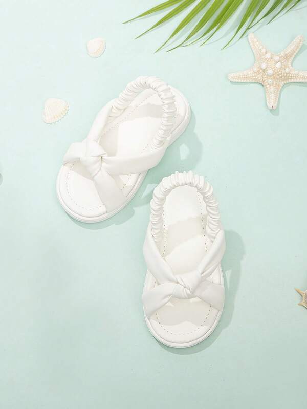 Girls' Flat Sandals With Infant Bowknot Decoration And Open Heel