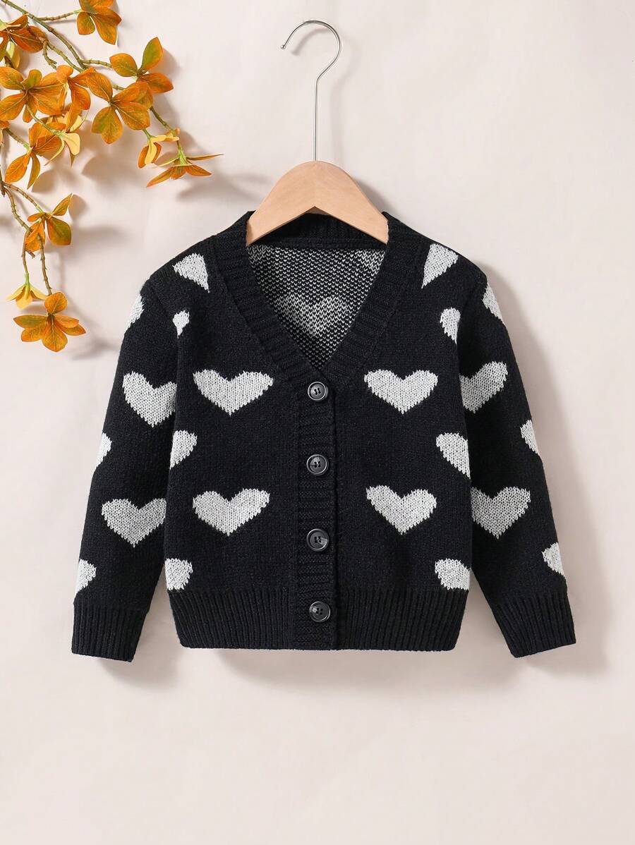 Girls' Heart Pattern Cardigan Sweater