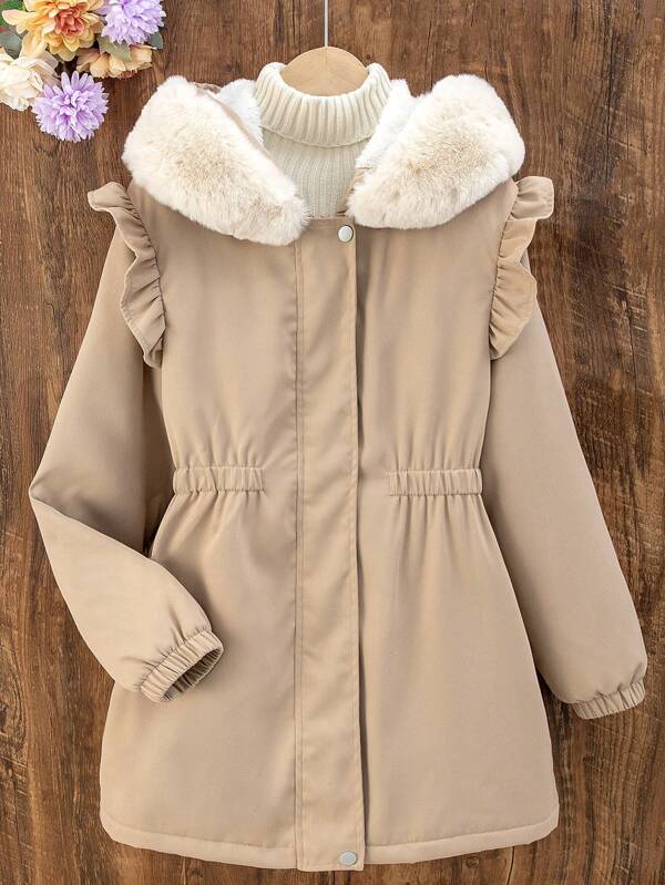 Tween Girl Hooded Cinched Waist Khaki Padded Coat