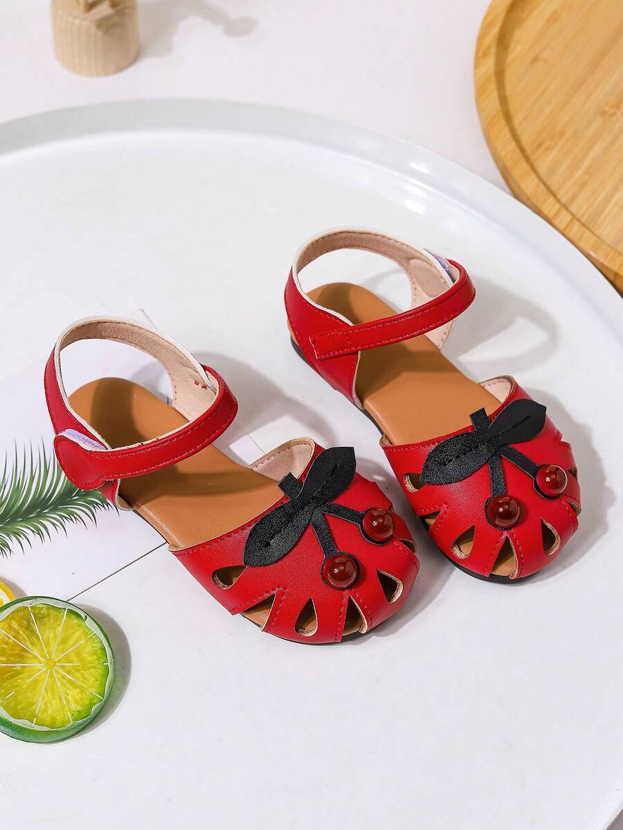 Girls' New Spring Summer Style Red Cute Baby Step Flat Sandals, Toddler Daily Casual Hollow Out Flat Shoes With Round Toe