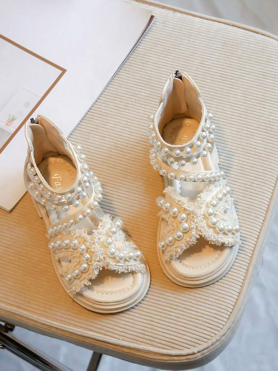 Girls' Pearl Decorated Roman Sandals Children'S Flat Sandals