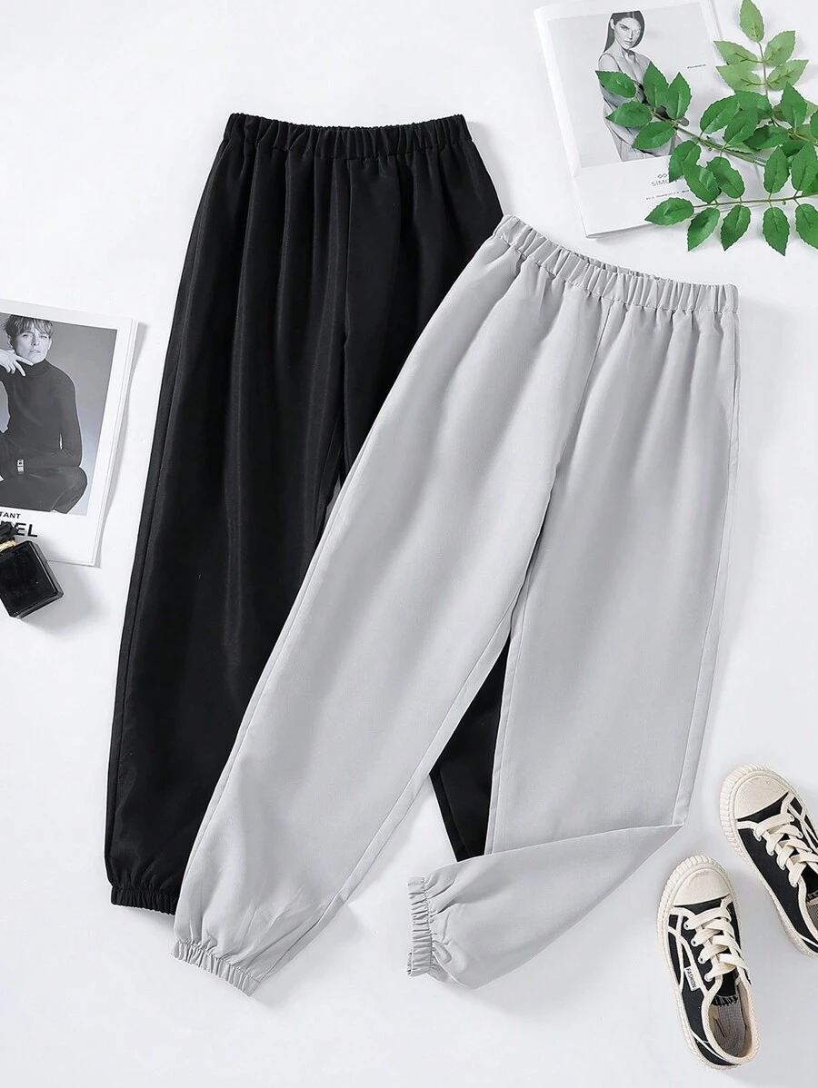 SHEIN Kids QTFun Girls' Solid Color Elastic Waist Long Pants, For Youth