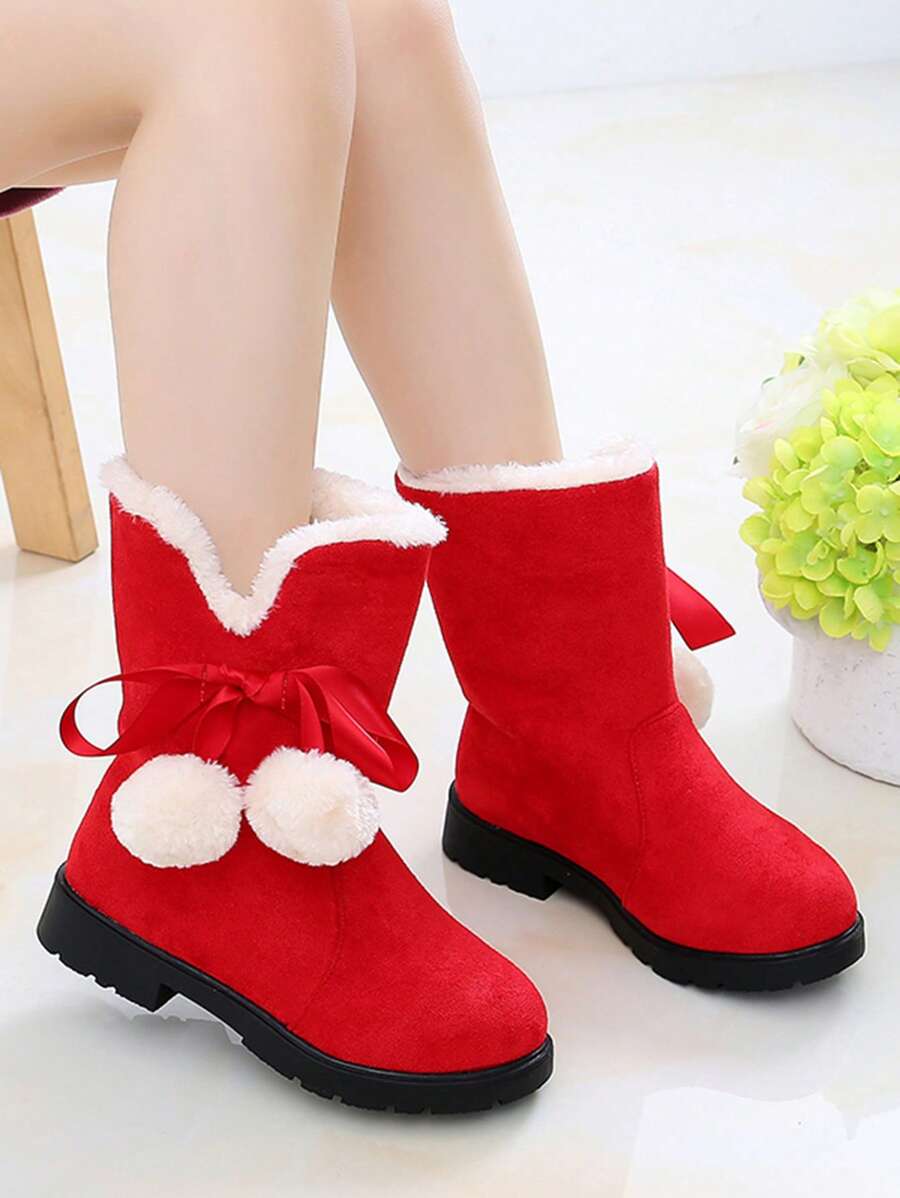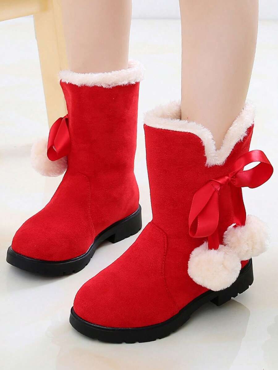 Girls' Solid Color Warm, Slip-resistant, Round Toe, Mid-cut, Fitted, Flat, Low-heel Snow Boots For Outdoor/everyday Use