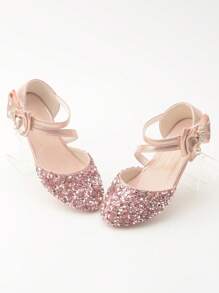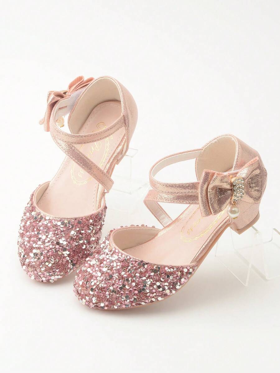Girls' Spring Style High Heel Princess Shoes For Children'S Leather Shoes, Dance Stage Performance Single Shoes With Formal Dress Gold Crystal Shoes