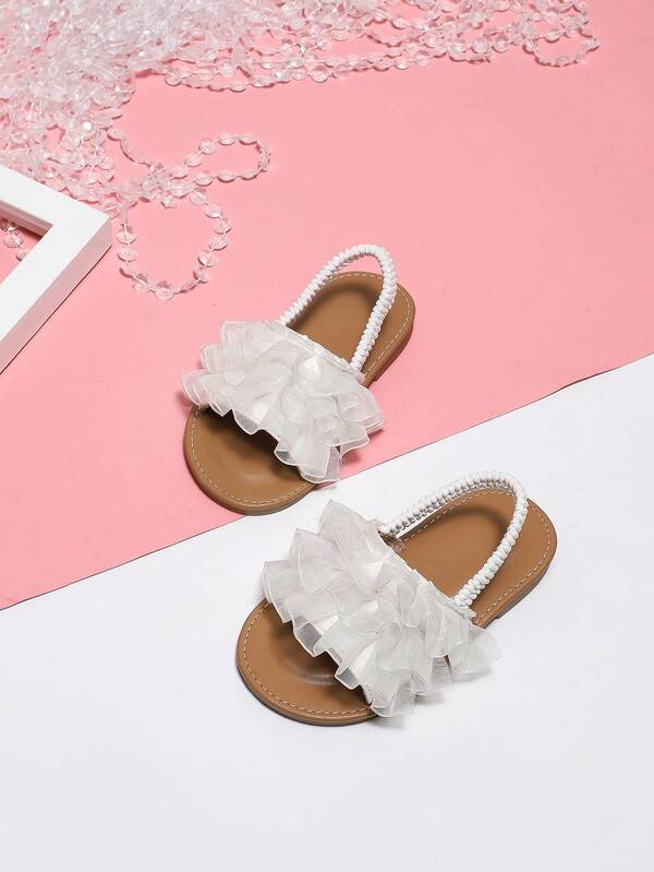 Girls' Summer White Lace Cute Princess Sandals With Sweet Ankle Strap For Toddlers And Fashionable Walking Shoes For Babies