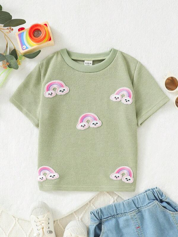Girls' Toddler Rainbow Embroidered Short Sleeve T-Shirt For Learning To Walk, Spring/Summer