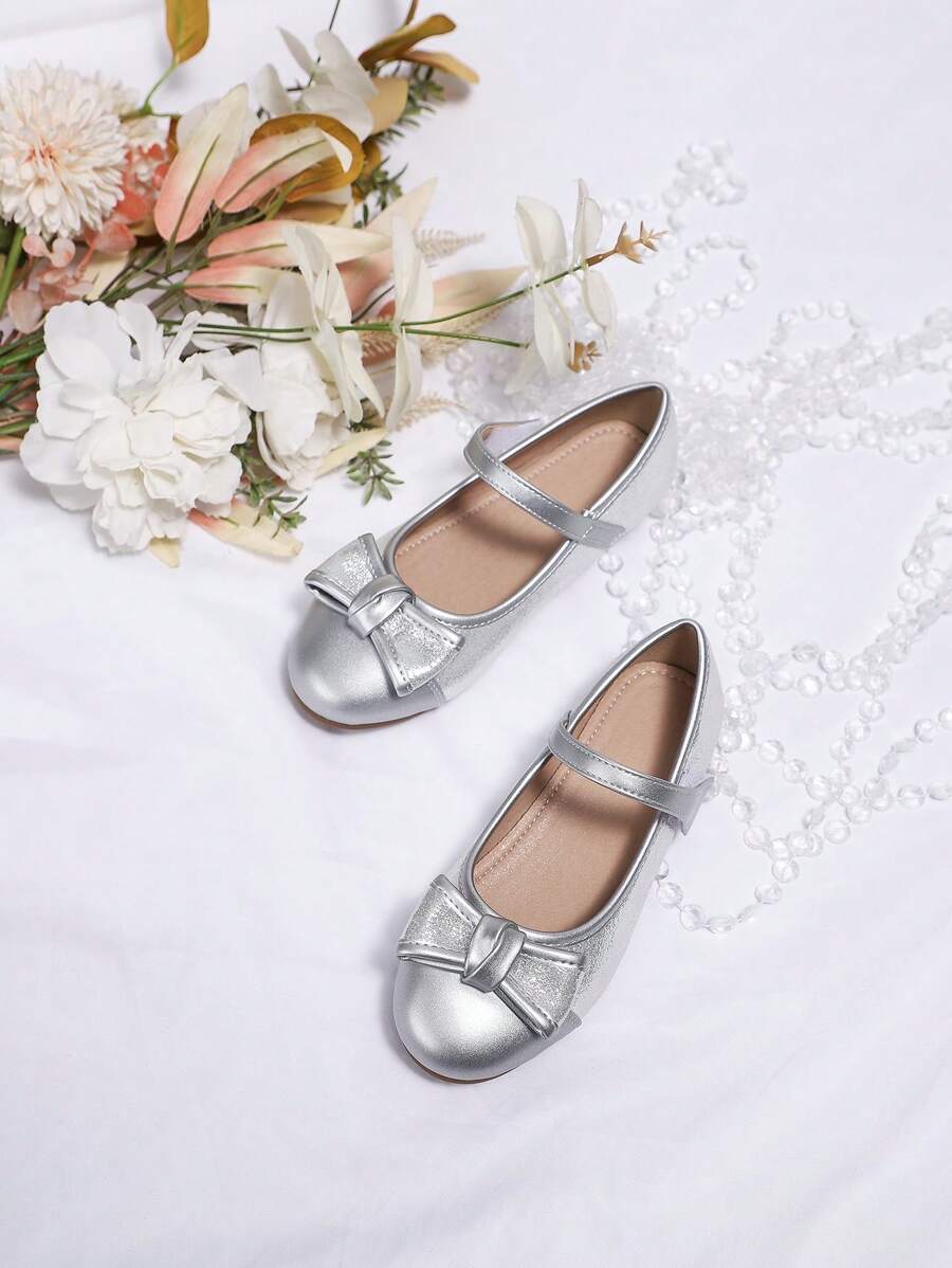 Girls' Vintage Silver Princess Style Flat Shoes For Autumn And Winter, Shallow Mouth Casual Shoes For Big Kids, Perfect For Students' Performances And Dancing