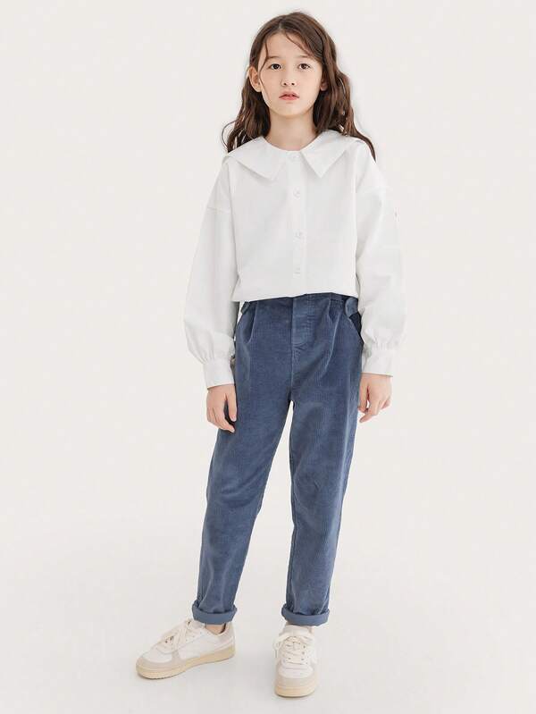 Girls' Vintage Solid Color Corduroy Pants For Spring And Autumn