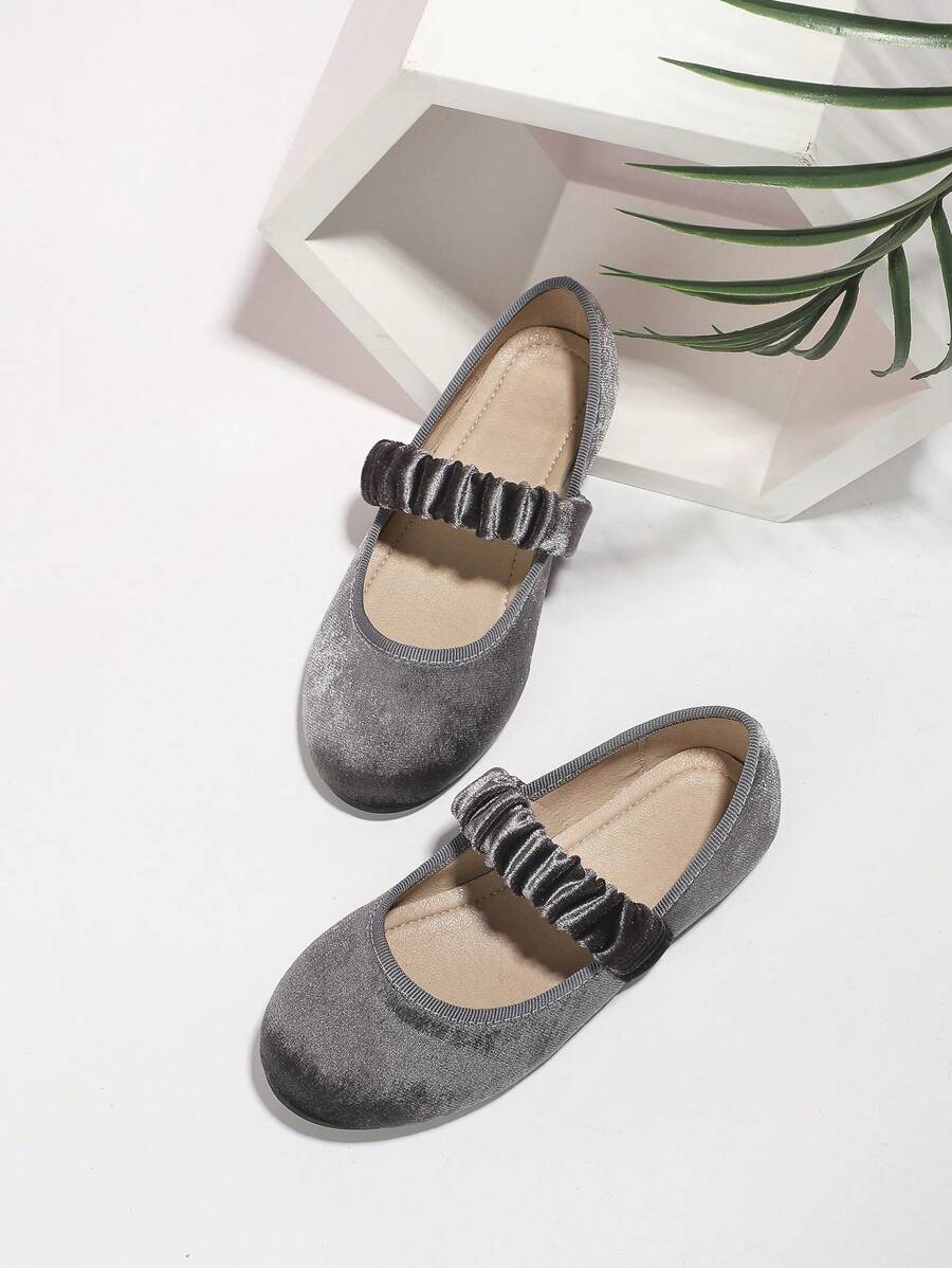 Girls' Vintage Velvet Soft-sole Princess Shoes, Suitable For Big Kids And Little Girls, With Shallow Mouth Design And Suitable For Dancing, Autumn-winter