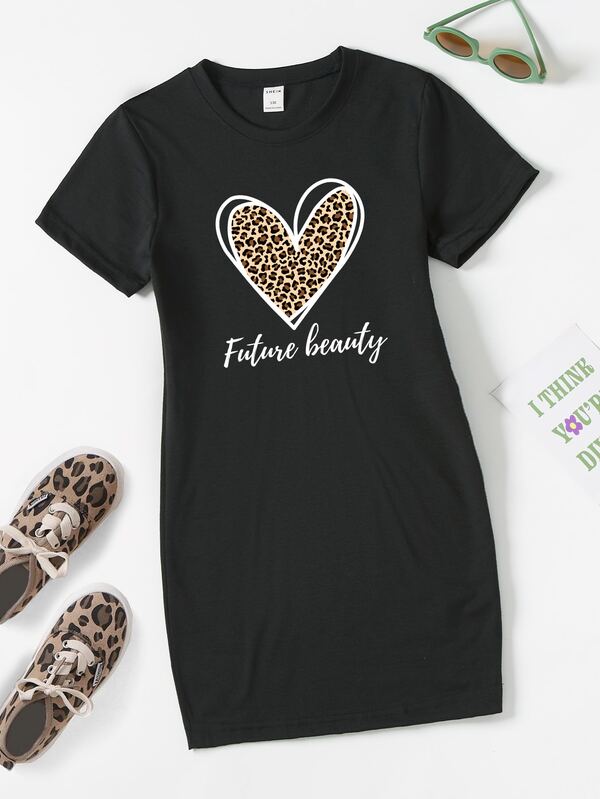 SHEIN Kids EVRYDAY Girls 1pc Heart & Letter Graphic Tee Dress
