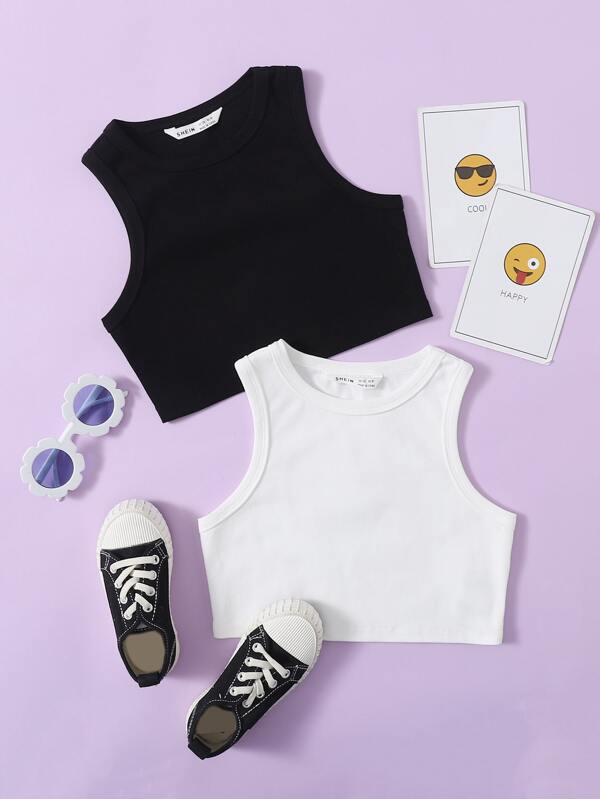 SHEIN Kids EVRYDAY Tween Girl 2 Pack Solid Tank Top