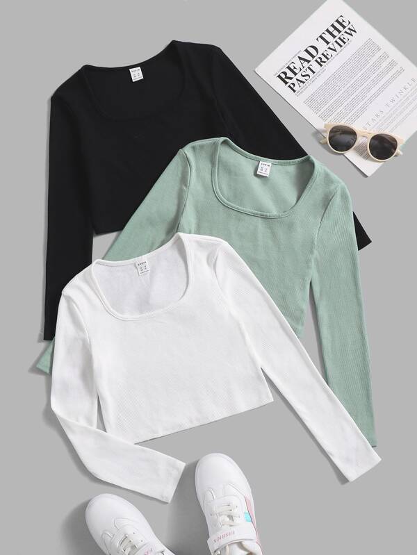 SHEIN Kids EVRYDAY Tween Girl 3pcs Ribbed Knit Tee