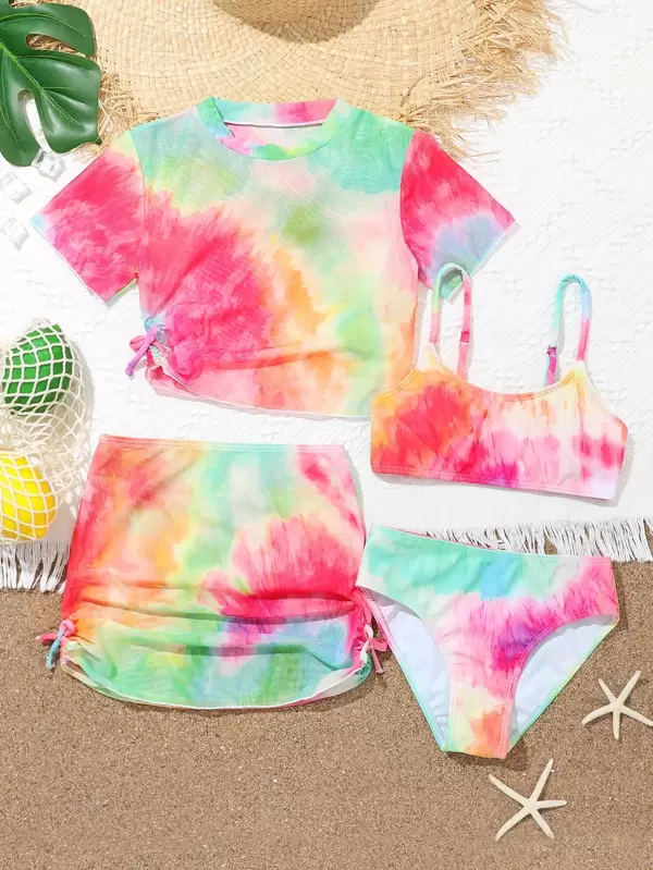 Tween Girl 4pack Tie Dye Drawstring Side Bikini Swimsuit