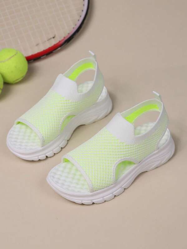 Girls Breathable Knitted Sport Sandals, Fashionable Outdoor Footwear